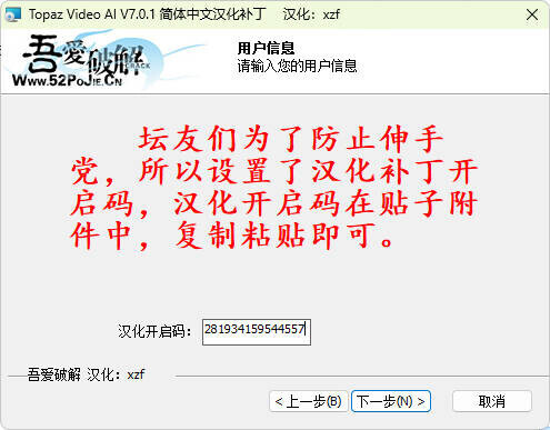 2回到安装包双击安装汉化补丁,输入密码安装:281934159544557