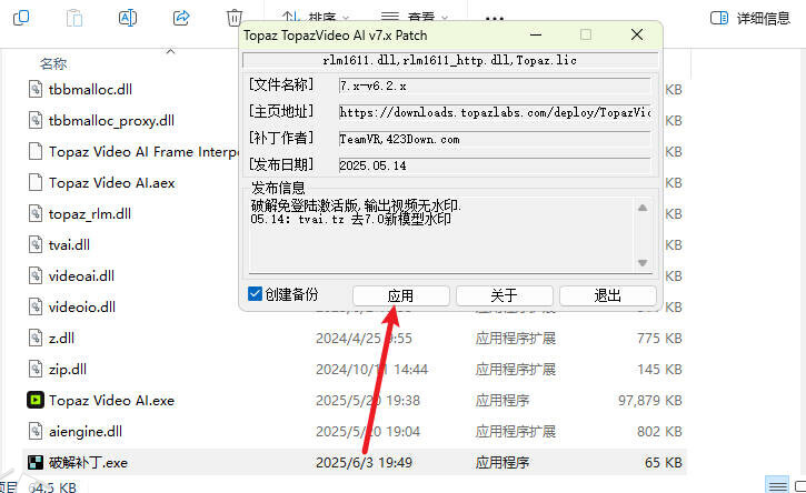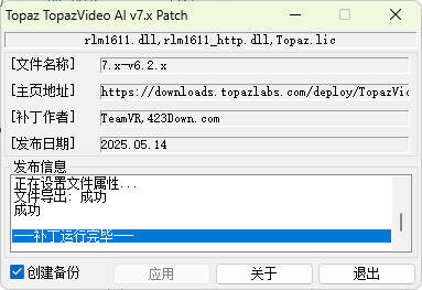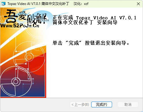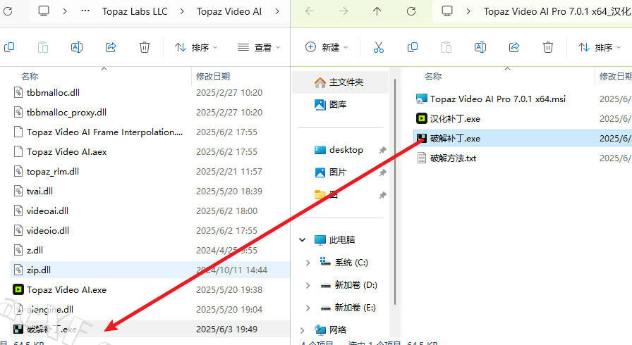 3打开文件安装位置(默认位置为:C:\Program Files\Topaz Labs LLC\Topaz Video AI)将破解补丁复制进去双击运行完成即可