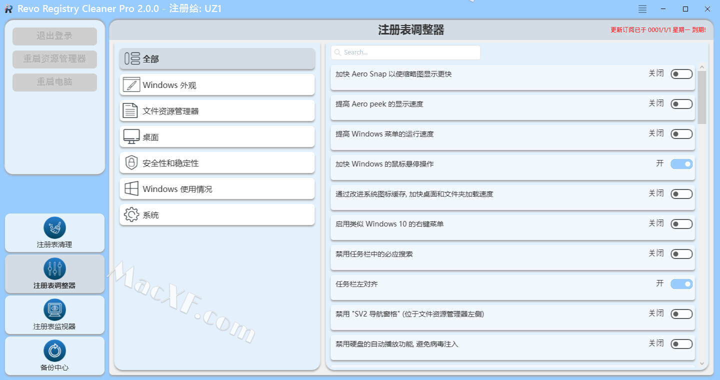 注册表调节器(Registry Tuner) 使用50种注册表调整选项,定制你的Windows使用体验。轻松优化、微调并解决问题,实现更流畅的系统性能。