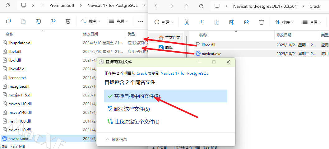 3回到安装包打开crack文件夹,将里边的两个文件复制进软件安装目录点击替换即可完成破解