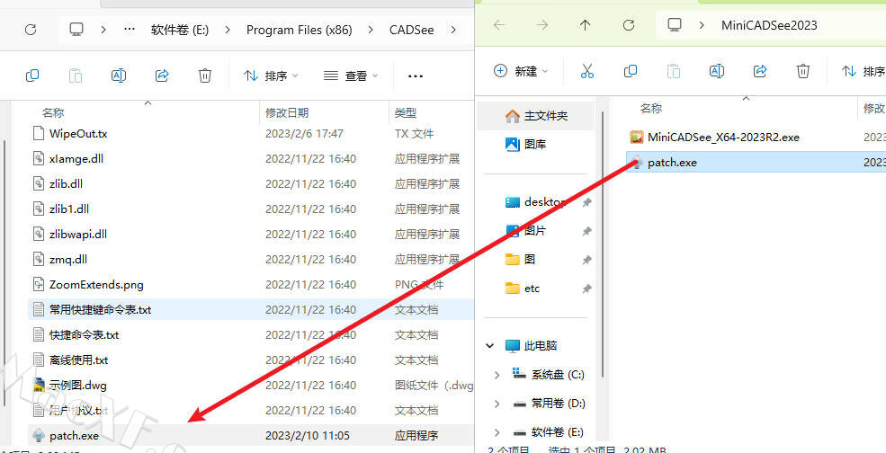 2回到安装包解压patch.7z将patch.exe放进软件安装目录中