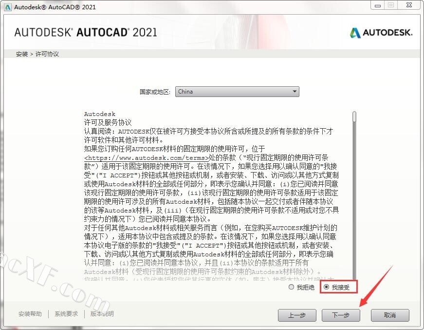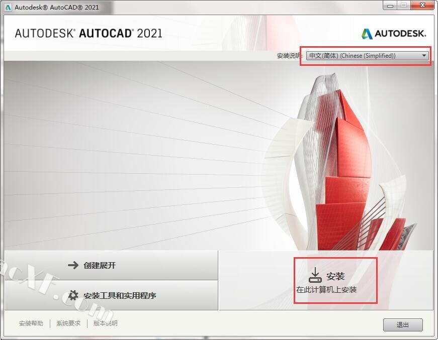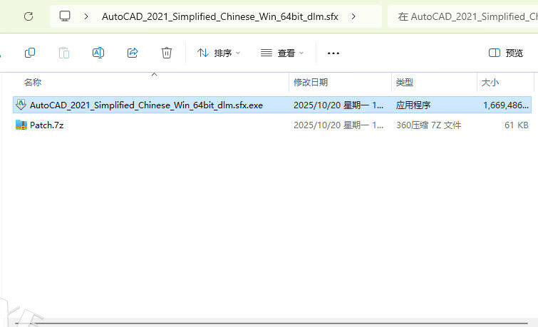 1在本站下载解压后,双击安装AutoCAD_2021_Simplified_Chinese_Win_64bit_dlm.sfx.exe
