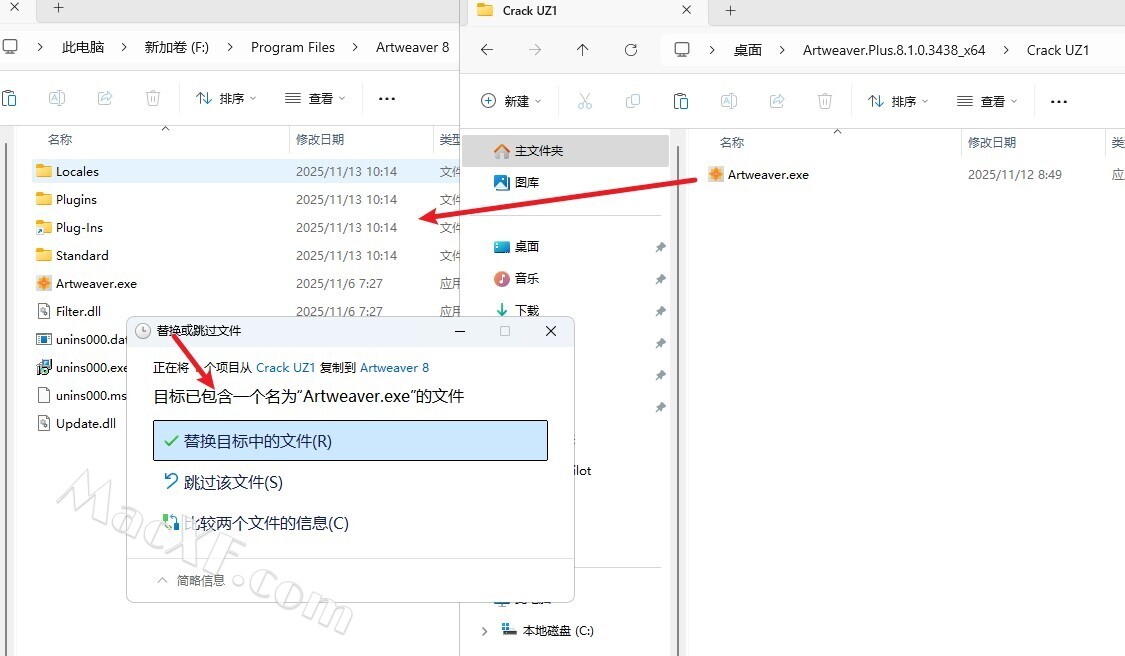 9将破解文件“crack”中的Artweaver.exe(根据自己的系统要求选择)复制到软件安装目录,并替换