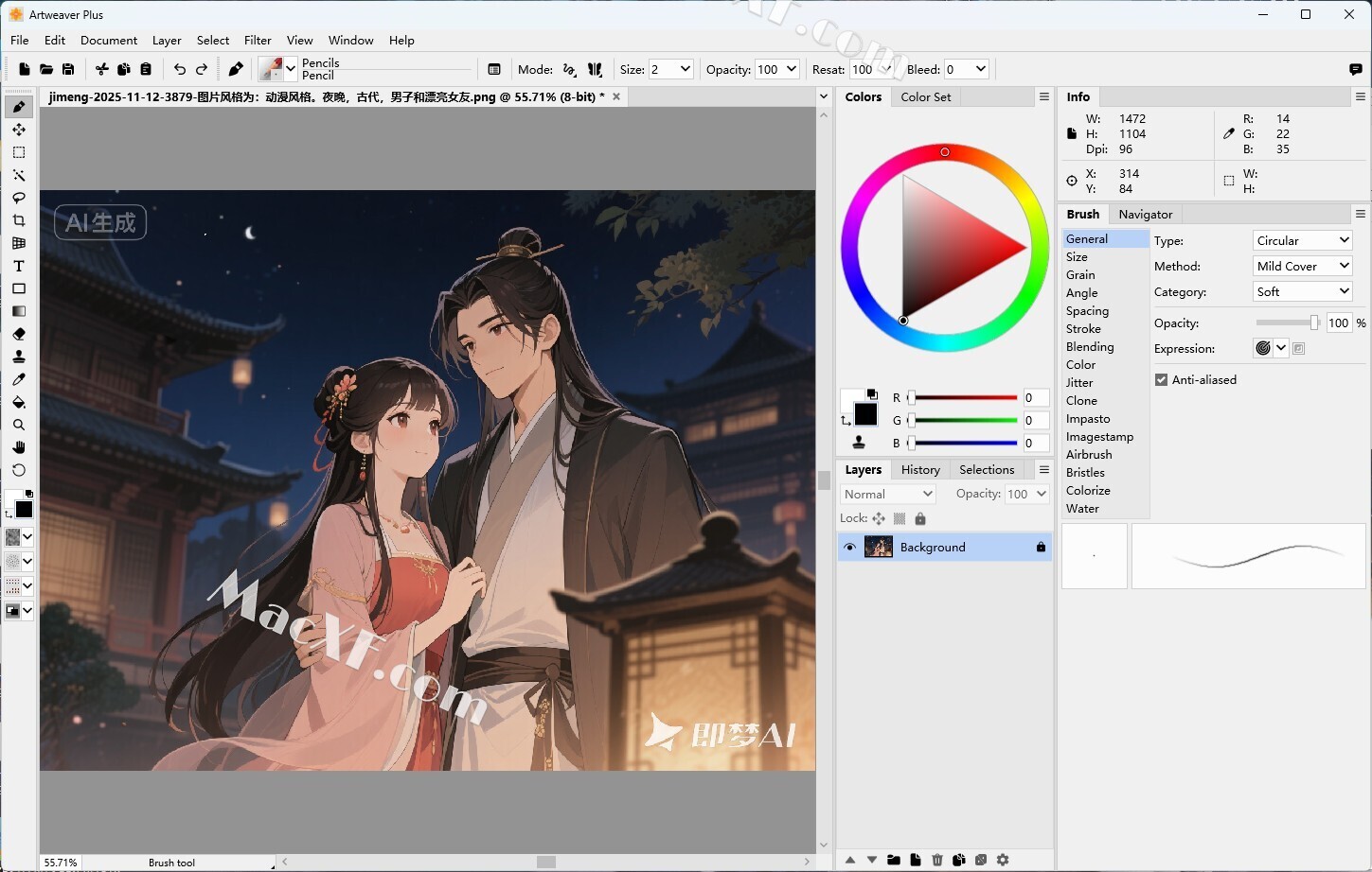 - Artweaver具有强大且高度可配置的画笔系统,可模拟许多不同的画笔。